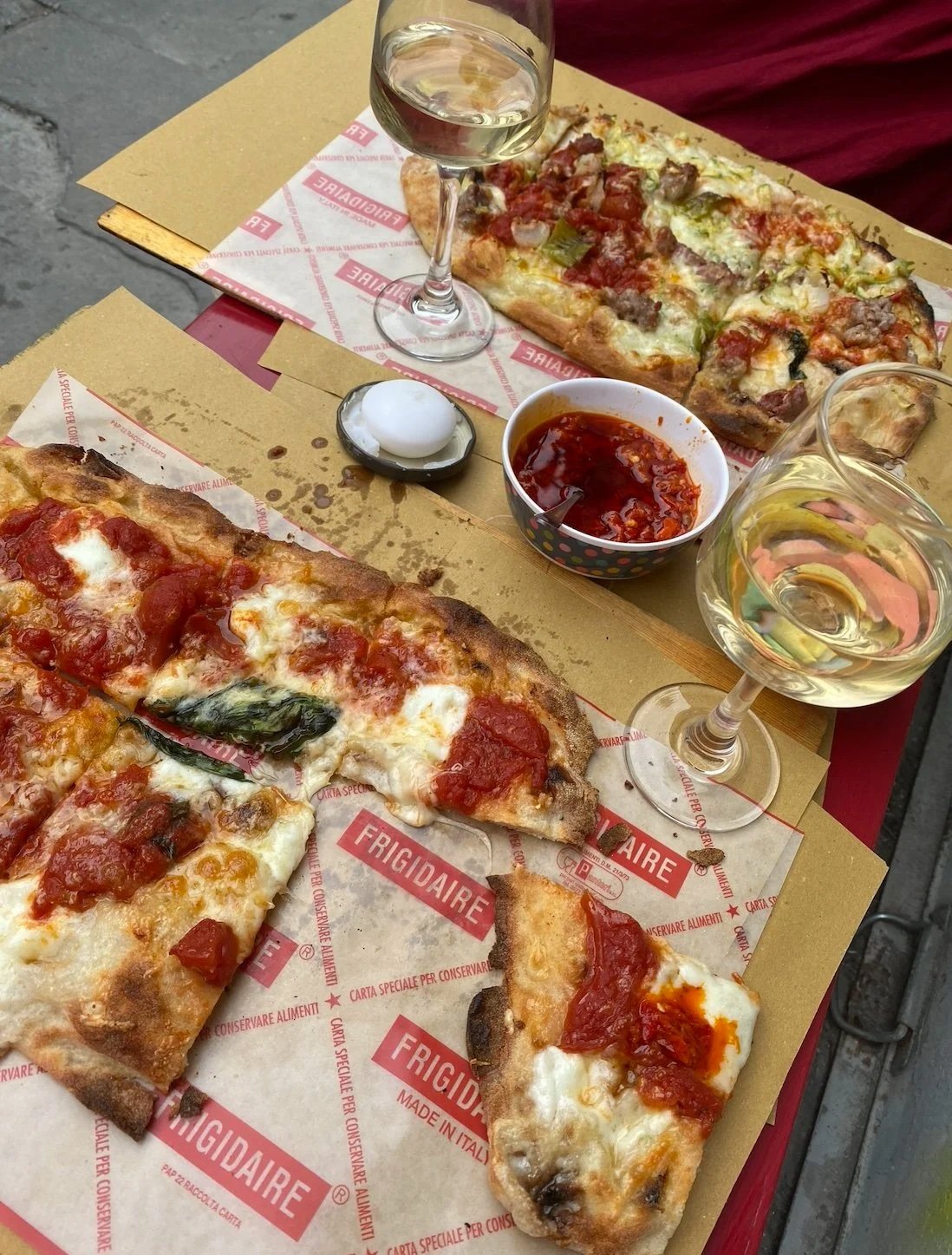 I am being very generous with this recommendation because I desperately want to keep this place to myself. Situated in the Oltrarno, L’uva e il vino simply has the best pizza, wine, and atmosphere. You will find yourself sitting on a tiny little stool inside an eclectic tavern drawing flowers with chalk. The buffala cheese on the pizza is amazing. Don’t even get me started on the crushed chili sauce that comes with the pizza. A pizza with a glass of wine will run you about 20 euros.